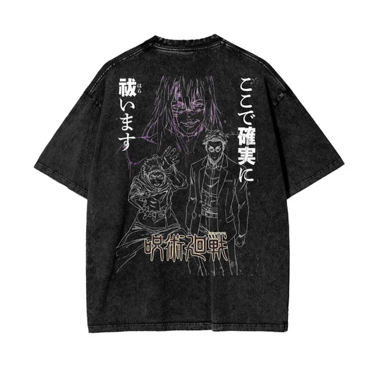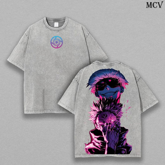 Jujutsu Kaisen Vintage Tee – Gojo Satoru x Ryomen Sukuna Oversized Wash T-Shirt, Heavy Cotton JJK Anime Shirt.