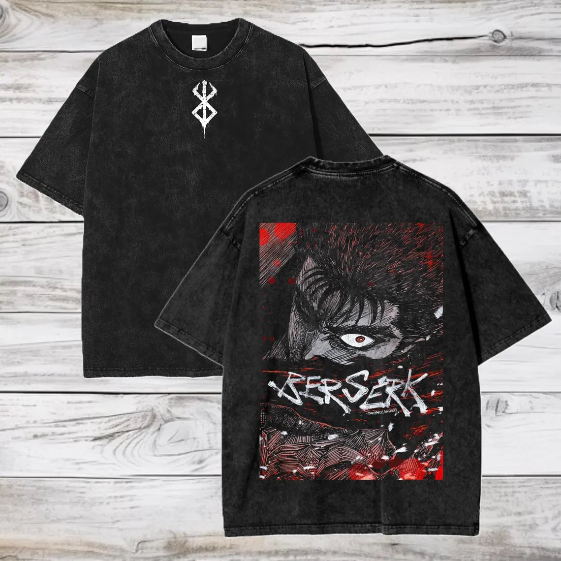 Berserk Anime Acid Washed Oversize T-Shirt Guts Anime Tee Gift For Him