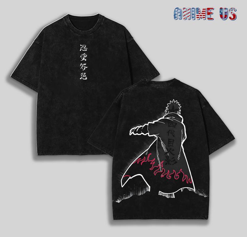Minato Namikaze "Fourth Hokage" Father Naruto Anime Printed T-Shirt Washed Unisex Streetwear Naruto Merch Gift For Naruto Fan Minato Fan