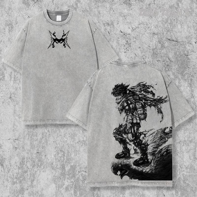 HardTimesClothing Frenzy Flame Elden Ring Retro Vintage Unisex Oversize Anime Manga Acid Washed Heavyweight Cotton T-shirt, Anime Merch, Gift For Anime Fan. Menswear Oversized
