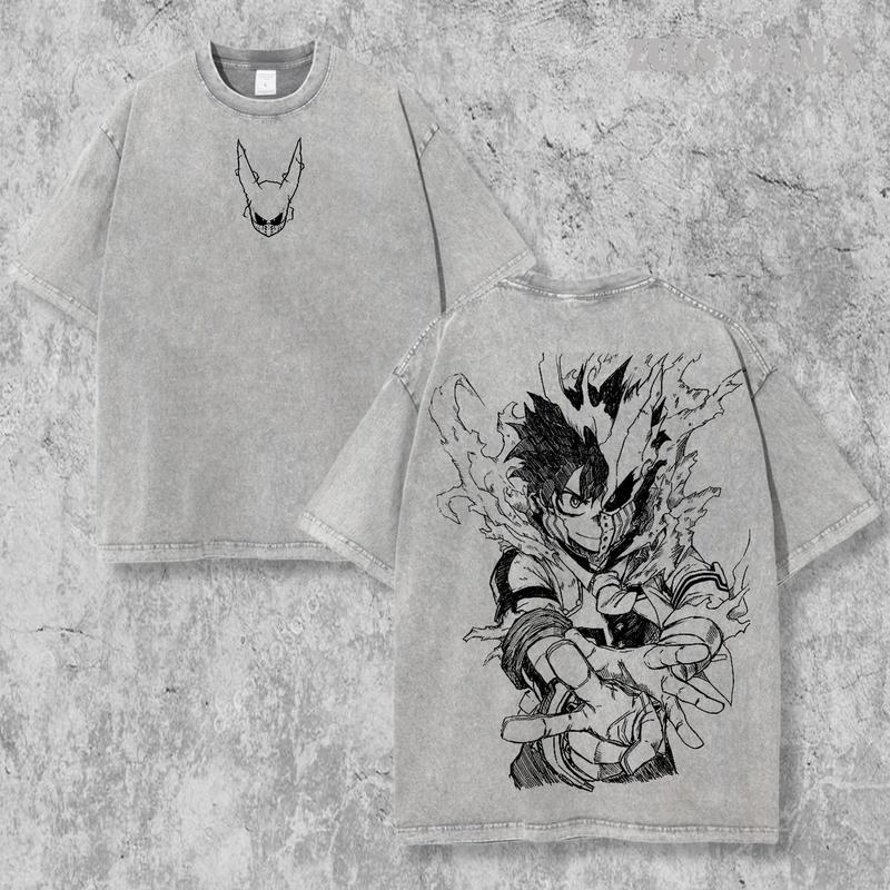 Retro Vintage Limited Deku Ver4 - My Hero Academia Anime Double Printed Oversized Washed Tee Unisex Oversize Anime Manga Acid Washed Lightweight Cotton T-Shirt, Anime Lover