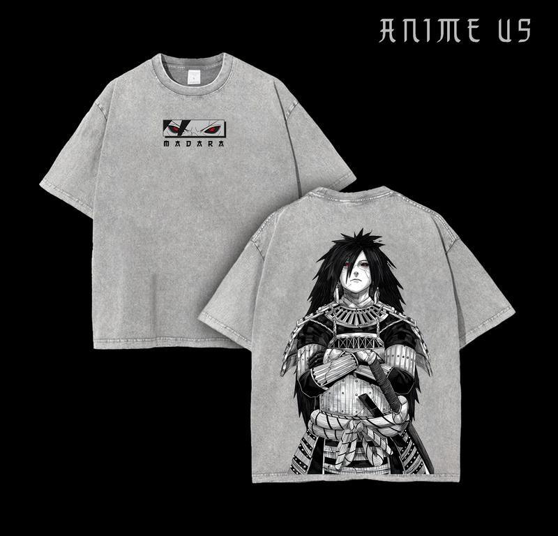 Uchiha Madara x Naruto Anime Double Printed Washed Tee Unisex Oversize Anime Manga Lightweight Cotton T-Shirt, Gift For Anime Fan Lover , Madara Fan , Madara Shirt , Naruto Merch
